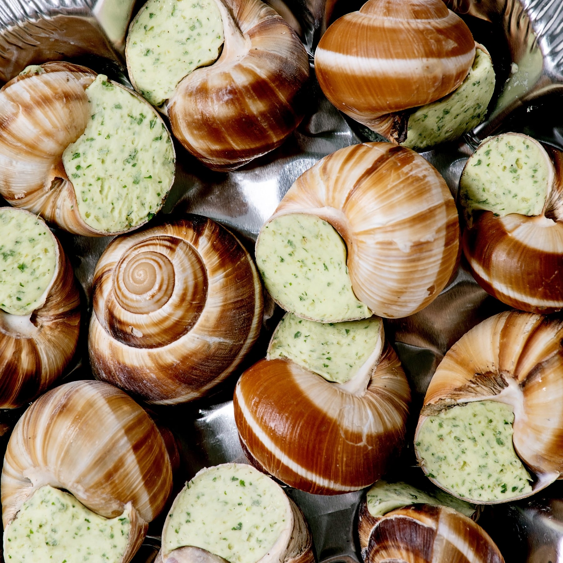 Ingredients: Helix Lucorum escargots, butter, garlic, parsley, salt, red pepper.